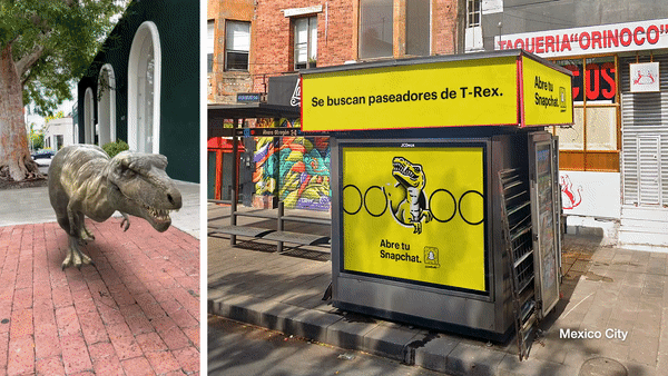 We launched the campaign with hundreds of OOH placements in London, Mexico City, and a dozen US markets, each featuring a scannable Snapcode that opened a contextual AR Lens. We also partnered with iconic brands to make these scannable ads shoppable. And our digital presence was just as contextual: when people searched a range of topics on YouTube, we served them a relevant Lens in one of 50 pre-roll videos.